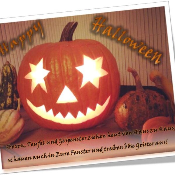 Heute ist Halloween, die Nacht der Geister und Hexen... sicherlich erhält man heute Abend auch von von vielen kleinen Geistern Besuch, die "Süßes, sonst gibt's Saures" rufen und für manche Gruselei sorgen. Wir wünschen viel Spaß - - Happy Halloween!