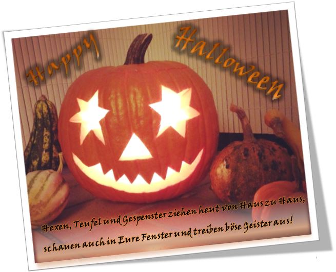 Heute ist Halloween, die Nacht der Geister und Hexen... sicherlich erhält man heute Abend auch von von vielen kleinen Geistern Besuch, die "Süßes, sonst gibt's Saures" rufen und für manche Gruselei sorgen. Wir wünschen viel Spaß - - Happy Halloween!Wenn Sie wissen möchten, wie die Sterne in der heutigen Nacht für SIe stehen, dann rufen...